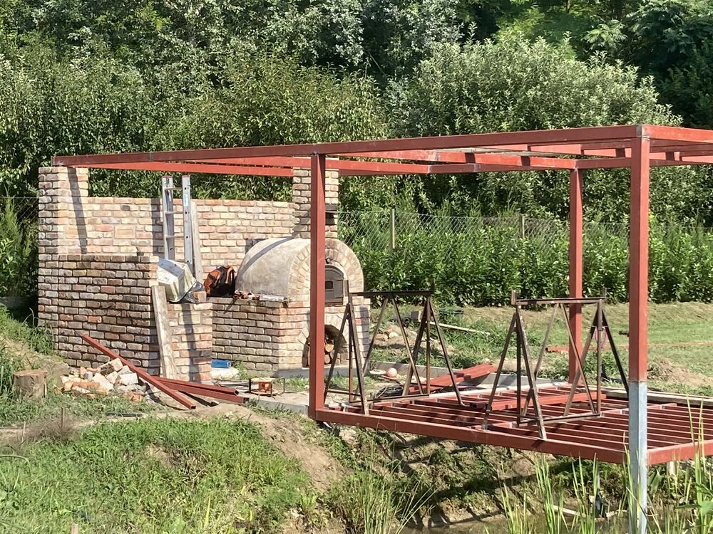 A teraszhoz kapcsolódóan egy tégla falazatú kemence is elhelyezésre került, önálló alappal, alsó fatároló résszel és felső sütőtérrel.