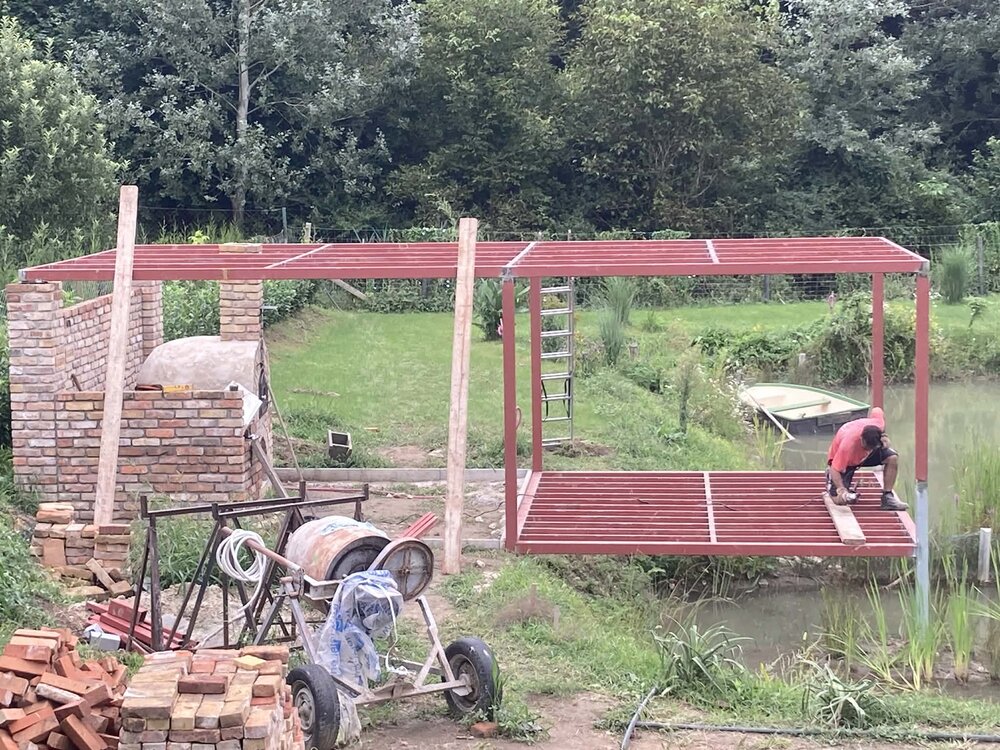 Acélszerkezetes, vízparti terasz egyedi kivitelezésben